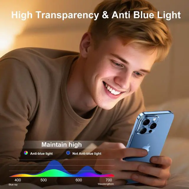 Industry-Leading Shatterproof Protection Engineered with aerospace-grade 9H+ hardness and reinforced by triple ion-exchange technology this anti-blue light protection screen protector of iPhone 13 /iPhone 13 Pro/iPhone 14 surpasses industry standards offering 12X enhanced durability. Tested against 12ft drops 282lbs of crushing force and 20 000+ abrasion cycles it delivers good military-certified defense for your iPhone 13/13 Pro/14 stays intact even under extreme impact. invisible and Precision 1:1 Full-Coverage This Screen Protectors for iPhone 13 /iPhone 13 Pro/iPhone 14 featuring CNC-carved 3D slightly curved edges and a black bezel that wraps seamlessly around your iPhones display this protector provides 99.9 % edge-to-edge coverageguarding vulnerable corners against cracks dust and lifting.