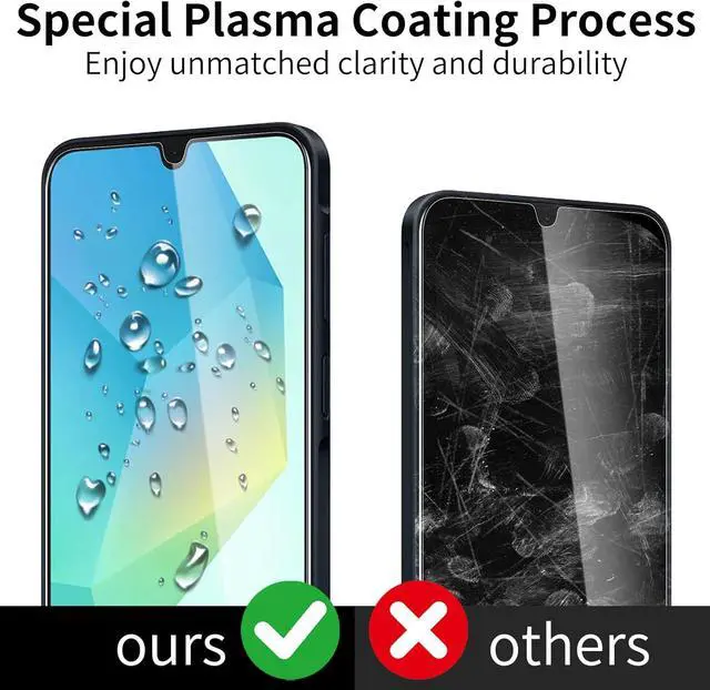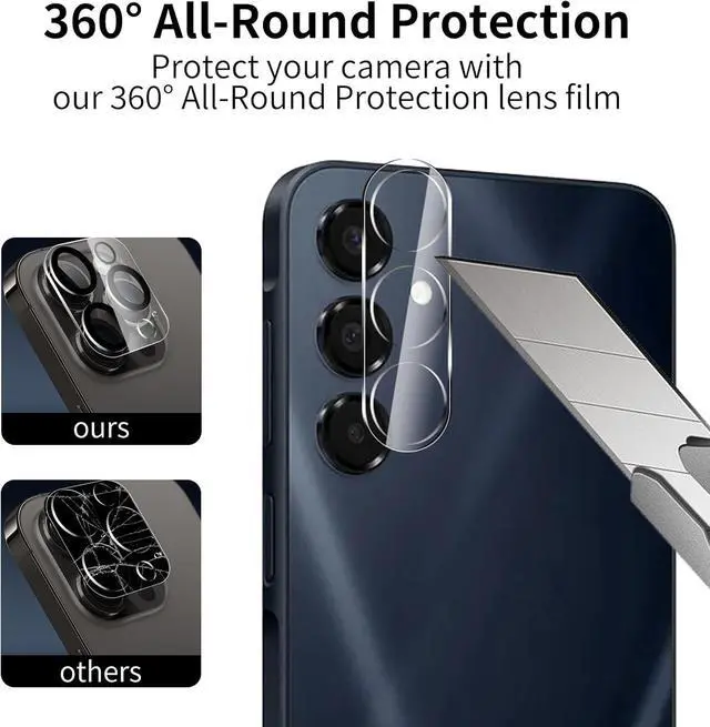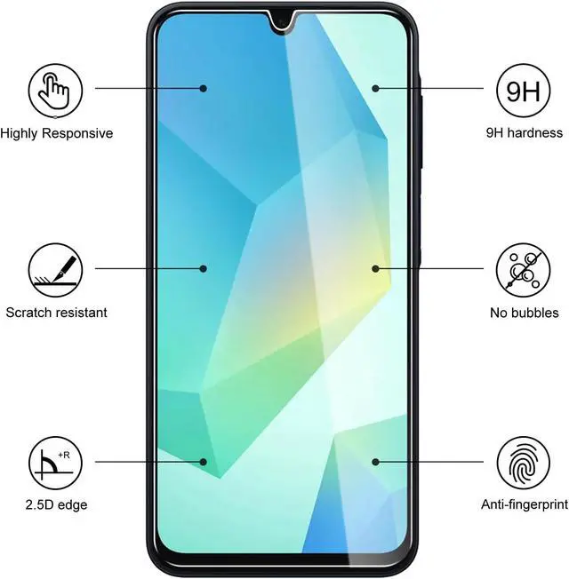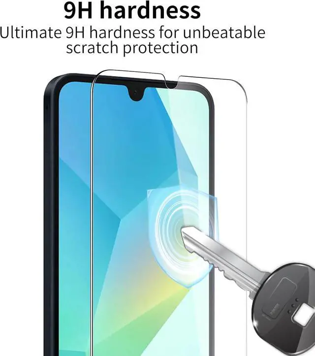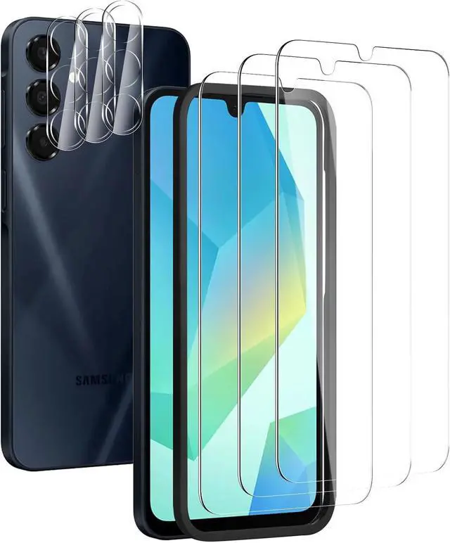 3+3Pack: This product includes 3 pack screen protectors +3 Pack Camera Lens Protector and Easy Installation Frame works for Galaxy A16 display tempered glass screen protector cleaning wipes dust removal stickers. Featuring maximum protection from scratches scrapes and bump. Follow the simple installation process to avoid air bubbles or misalignment.