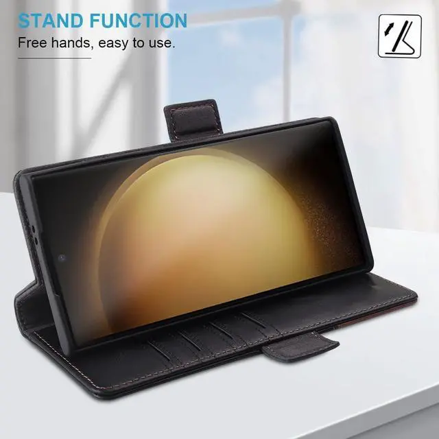 Material]: Case for Galaxy S26 ultra is made of genuine leather it uses special craftsmanship and gives you a luxurious touch. The soft leather material effectively absorbs shock from drops protect your phone against damage. This material is very durable allowing you to avoid changing the phone case for a long time and over time the leather surface will produce a unique luster[Stand