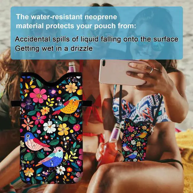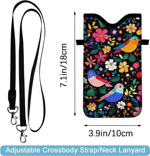 Made of high quality neoprene and elastane lightweight and soft protects your valuable electronics device (smartphone power bank external hard drive etc. )against dust bumps scratches and moistureThe cell phone bag 7.1 x 3.9 in (18 x 10 cm) fits most of smartphones in the marketThe removable shoulder strap allows you to carry the bag as a crossbody cell phone purse sling shoulder bag or neck pouchOpen design lets you slide your phone in and out easily keeping earphones and charging cables within easy reachThis phone water protector pouch built-in velcro straps help secure bag contentsprevent items from falling