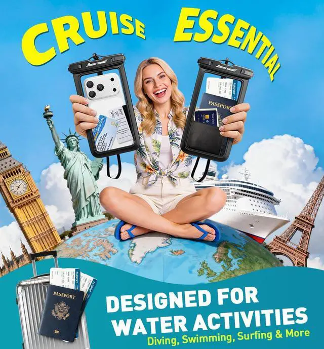 Cruise-Ready IPX8 Waterproof Protection: Fully sealed IPX8 waterproof pouch protects your phone from splashes rain pool water and beach sandperfect for cruises pool decks water rides beach days and tropical excursions. Touch-Friendly Screen for