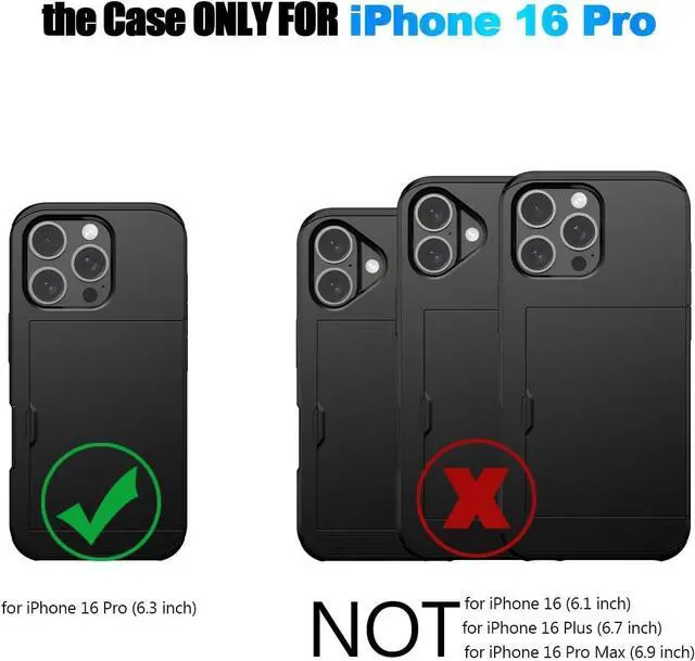 Precise Cutout: The cutout fits each button camera speakers and ports precisly easy to press and access. Package include one phone case for iPhone 16 Pro with credit card holder ONLY.