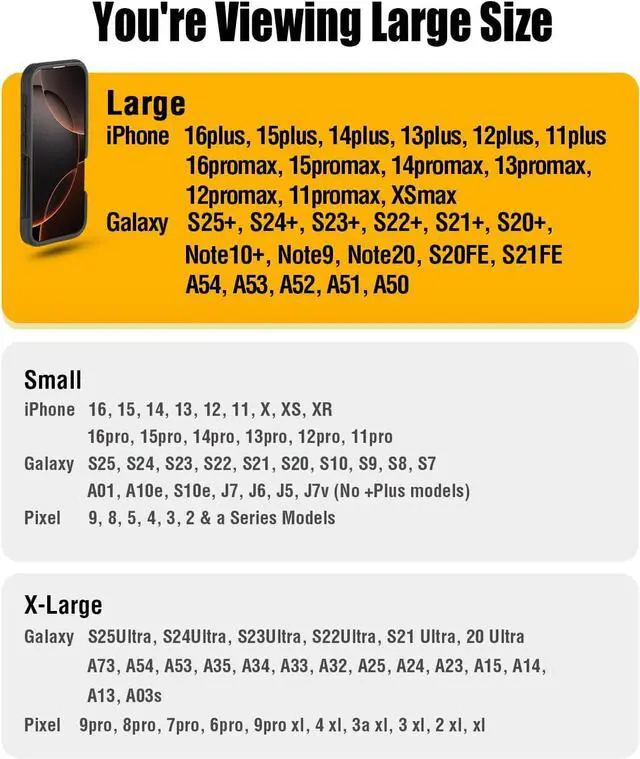 This phone holster is designed for large cell phones with protective case on: iPhone 16 plus 16 pro max 15 Plus 15 Pro Max 14 Plus iPhone 14 Pro Max iPhone 13 pro max 12 pro max 11 pro max Xs max 8 Plus Galaxy s23+ plus s22+ plus s21 plus s20 plus A54 A53 A52 Google Pixel 4 XL and more. [ Holster Dimensions ] 6.60 x 3.3 x 0.6 - Extra room to fit large phone with case on. [ UPGRADED Nylon Belt Clip ] Better than Metal and Plastic Clip longer lasting material. Timeless Design - Elevate your style with a classic leather finish that complements any attire from business to casual. Say goodbye to bulky smartphone in your pocket and experience the convenience of carrying your device safely with the BOMEA Holster. Trust in BOMEA's premium craftsmanship since 2014!