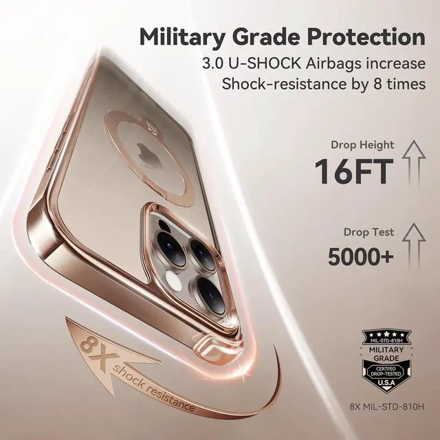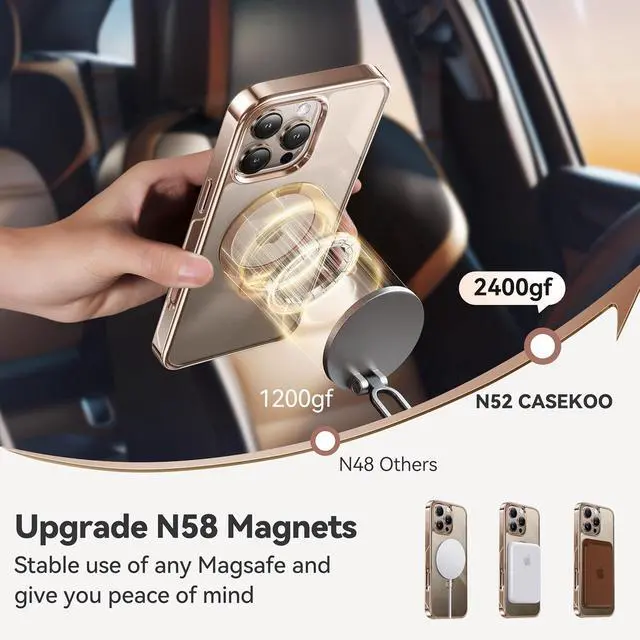 The crystal-clear transparent back panel highlights the iPhone's classic design while the polished rose gold adds a touch of premium luxury and stylish. Stronger Magnets Fit MagSafeEmbedded N58 magnets with MagPrime technology ensure 2x stronger magnetism and 25W fast wireless charging.