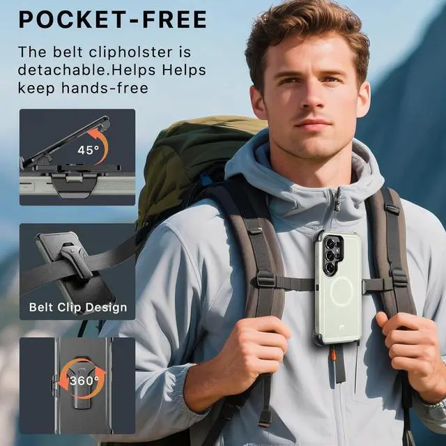 (Warm note: Without Built-in Front Screen Protector. )360° ROTATING HOLSTER CLIP FOR OUTDOOR & INDOORDetachable rotating holster conveniently attaches to your belt or bag allowing you to keep your device accessible and secure this Galaxy S26 Ultra case with belt clip is wonderful for outdoor activities and men. The Holster Clip can also be converted into a kickstand for a hands-free way to watch videos with ease. Advanced Anti-Slip TechnologySpecifically engineered for S26 Ultra case 6.9 this rugged bumper combines diamond-patterned textured edges w/ military-grade TPU material. Scientifically placed grip zones create 360° friction control - even with wet/oily hands. S26 Ultra case maintains ultimate slip resistance Design features raised side grooves that lock into palm contours ensuring the Galaxy S26 Ultra case stays anchored during intense mobile gaming or outdoor adventures. Friendly ReminderThe MagSafe Charger (Qi2 25W) is optimized for devices and is not fully compatible with the fast-charging protocol of the S26 Ultra. When charging non- devices it may result in mismatched power output leading to slower or intermittent charging. For a more stable and efficient fast-charging experience it is recommended to use an official adapter or other universal wireless chargers.