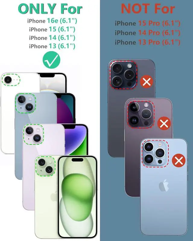 ONLY Fit for iPhone 15/14/13/16e: Military grade cell phone case is only designed for (iPhone 15/14/13/16e) and is not compatible with any other phone models. Precise cutouts for speakers cameras and other functional ports allow you to access all ports and controls easily. Great gift for men women boys and girlsBuilt-in