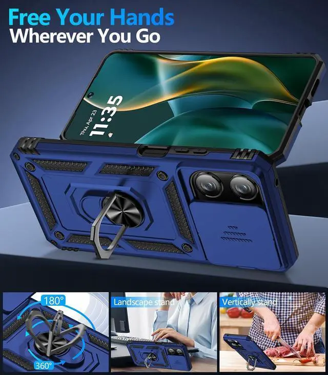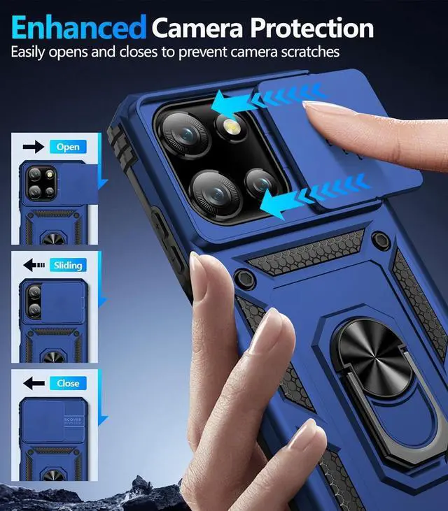 The camera Lens cover features grooved track for a smoother sliding experience it can slide smoothly left and right and the slide cover for the camera can snaps in place to lock in the open position and closed position no worry about the camera lid will be loose or fall off you can get a nice clear picture because you always have a clean lens. Built-in Metal Ring KickstandFor Moto G 2025/Moto G 2026/Moto G Play 2026 Case with Ring Kickstand can hook your finger through it for ease of use when making a long call or use it has a stand when watching a movie vedio or face-time with your friend in both vertical and horizontal positions.