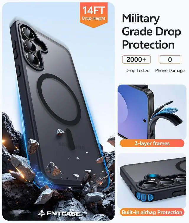 Grade Drop Protection: This S25 Fe Case backplane is made with rigid polycarbonate and flexible shockproof TPU bumpers around the edge and features 4 built-in corner Airbags to absorb impact which can protect your phone from accidental drops bumps and scratchesMatte