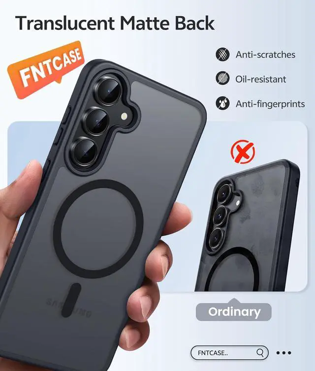 Texture: The Galaxy S25 Fe Phone Case using high quality matte TPU and translucent PC material without covering the logo; The frosted surface provides a comfortable hand feel and the nano-antioxidant layer can effectively prevent stains and scratches