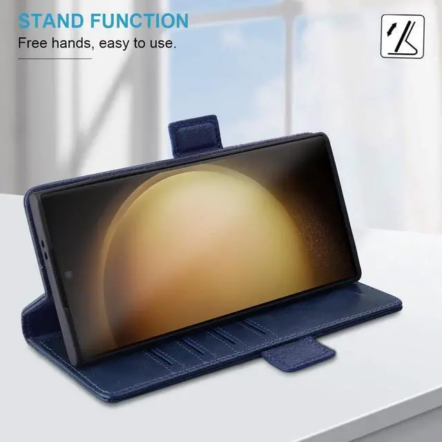 Case for Galaxy S26 Ultra Genuine Leather Wallet Case [RFID Blocking] Card Holder Kickstand Magnetic Protective Phone Folio Cover Compatible with Galaxy S26 Ultra 6.9(Blue)