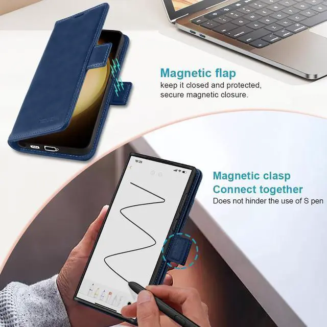 • KEZiHOME Case for Galaxy S26 Ultra Genuine Leather Wallet Case [RFID Blocking] Card Holder Kickstand Magnetic Protective Phone Folio Cover Compatible with Galaxy S26 Ultra 6.9(Blue)