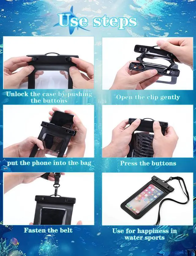 Application: The waterproof pouch case is vacation Essentials for Aquatic Sports. it perfect for swimming beach trip underwater snorkeling surfing boating skiing fishing kayaking rafting.