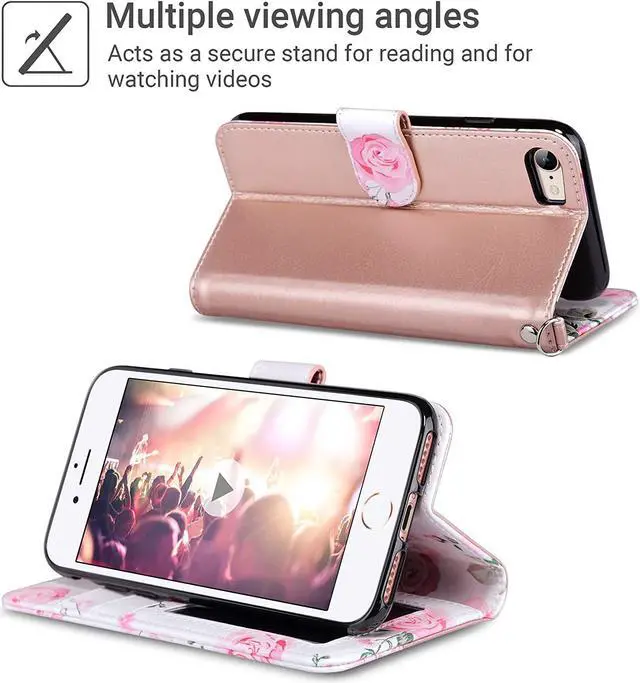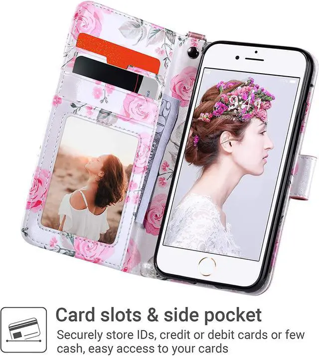 D. Card credit card and cash for on the go peopleThe PU Leather flip cover the screen of the phone avoiding scratches from day to day use. The fold-able kickstand feature provides convenient hand-free viewing experiencePrecise cutout ensure full access to all the function and ports to your iphone 7 or iPhone 8 / iPhone SE 2020; easy to put the case on and off the phone