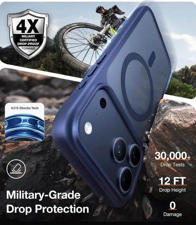 Strongest Magnetic Lock & Charges Fast: Feel the power of 38 N56 neodymium magnets working seamlessly with Halbach patented tech. With enhanced magnetic strength iPhone 17 pro magnetic case keeps your phone secure even on the roughest roads. iPhone 17pro case compatible with MagSafe with wireless charging supportTrusted 12FT Military