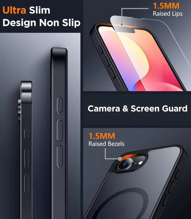 Magnetic Design: This iPhone 16e case compatible with magsafe. Built-in magnet ring aligns perfectly and locks into place making wireless charging faster and easier than ever. It will not fall off no matter how it rotates with super adsorption capacity.