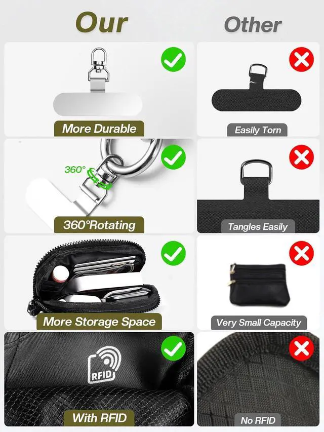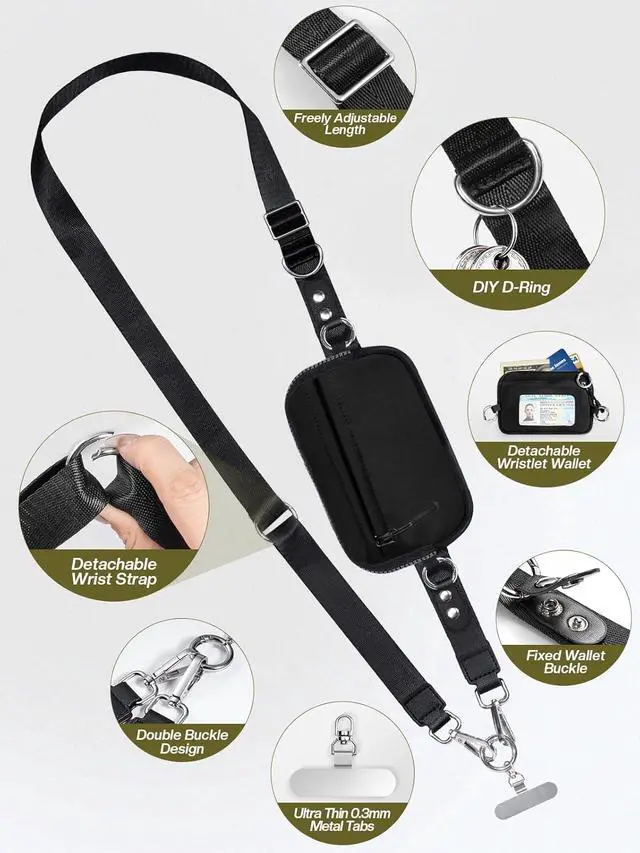 Go: The Tiostep phone lanyard with wallet can be used as a crossbody phone strap disassembled into a phone neck lanyard and wristlet wallet combo or used separately. Its stylish look and portable multi-functional design make it a must-have for daily life travel music festivals parties and more. Have this phone strap with a zippered pouch youre ready to head out anytime!