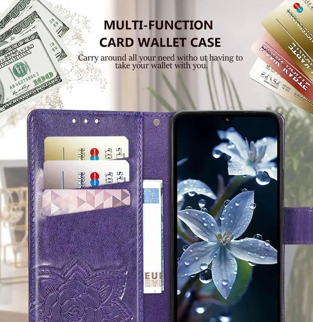 Exquisite Butterfly Pattern Design: The case wallet for women girls with 3D emboss butterfly flowers pattern premium leather with soft TPU interior material brings very comfortable touch feel. This folio case will bring you charm while offering protection and convenience.