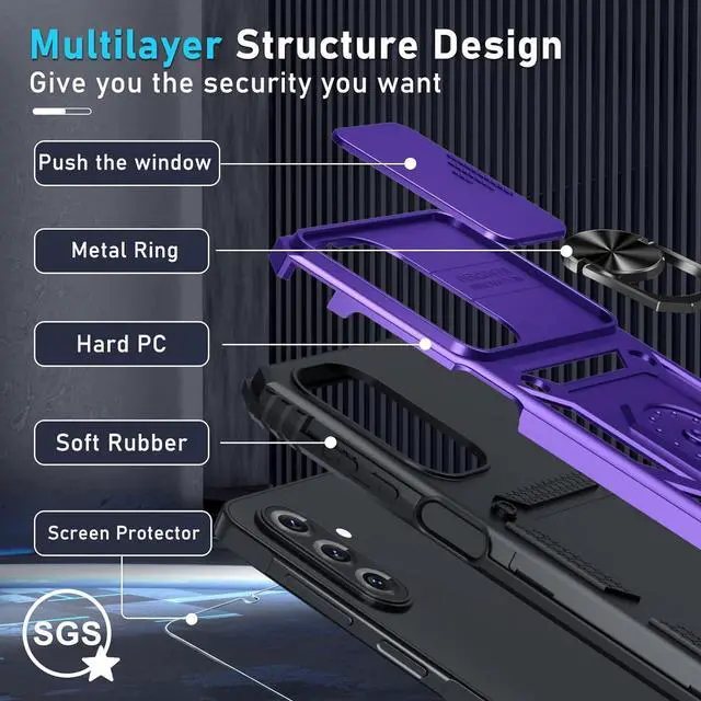 Note: Wireless charging is not supportedBuilt in Metal KickstandMetal kickstand 360°rotation ring can pull out for hands-free viewing in portrait or landscape mode. Additional the built-in metal sheet can be directly stably attached to the magnetic car phone mountDual Layer ProtectionThe case's shock-absorbing TPU bumper keep your phone safe from the occasional drop while its Hard PC back will protect it from daily wear and tear. Moreover the raised lip protects screen and camera effectivelyUnique Camera WindowThe sliding lens cover and raised bezel protect your phone camera from scratches. It can slide smoothly left and right perfect to hide the camera. Besides the sliding cover is slightly locked on both sides and can not be slid at willFree Screen ProtectorThe case presents 1 Pack screen protector HD clear scratch resistant bubble free anti-fingerpeints tempered glass. No need to buy the screen protector or camera cover separately
