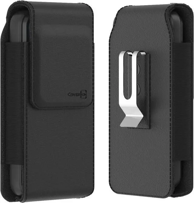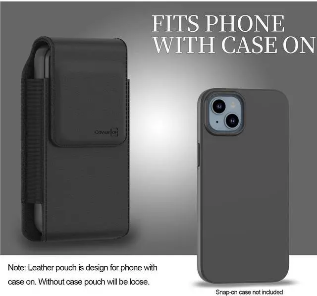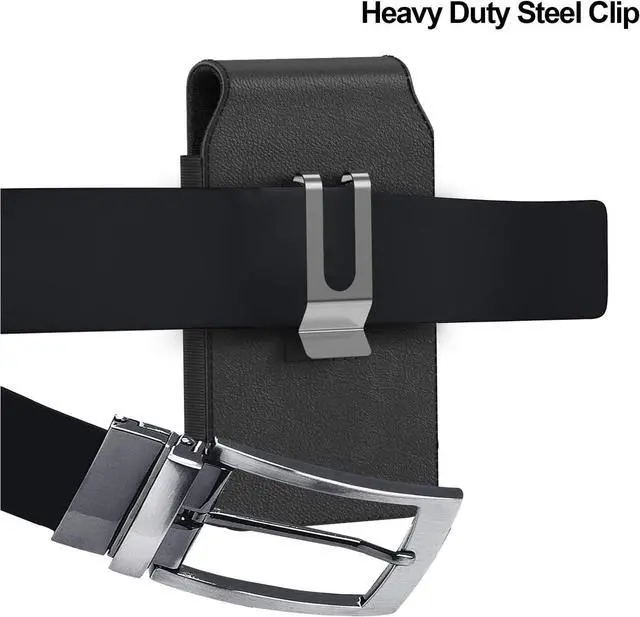 Vertical holster leather pouch with heavy duty belt clip. Note Fits with case on. Holster will be loose without case on.