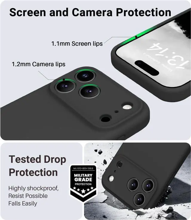 COMPATIBILITY Upgraded Design Liquid Silicone iPhone 17 Pro Max case non-slip shockproof anti-fingerprint easy to clean. TRUSTWORTHY QUALITY Made with Genuine Liquid Silicone and PC. Soft microfiber lining inside keeps the back of your phone scratch-free. Lightweight and slim design. INTEGRATED CAMERA CONTROL BUTTON Integrated full-soft silicone buttons deliver better feel and grip for your iPhone 17 Pro Max case look more streamlined and luxurious while maintaining seamless Capture Button functionality. EXTRA PROTECTION Compared with the traditional cell phone case for iPhone 17 Pro Max this case fully covers the camera and has 1.2 mm raised lips to protect the iPhone 17 Pro Max screen.