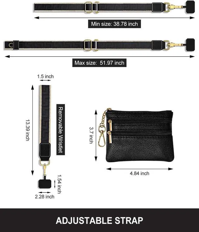 & Adjustable: Phone strap equiped with detachable and adjustable shoulder strap. It can be adjusted according to your needs as a crossbody bag strap wrist strap neck strap. Ergonomic design makes the phone strap more fit & comfortable to wearLarge