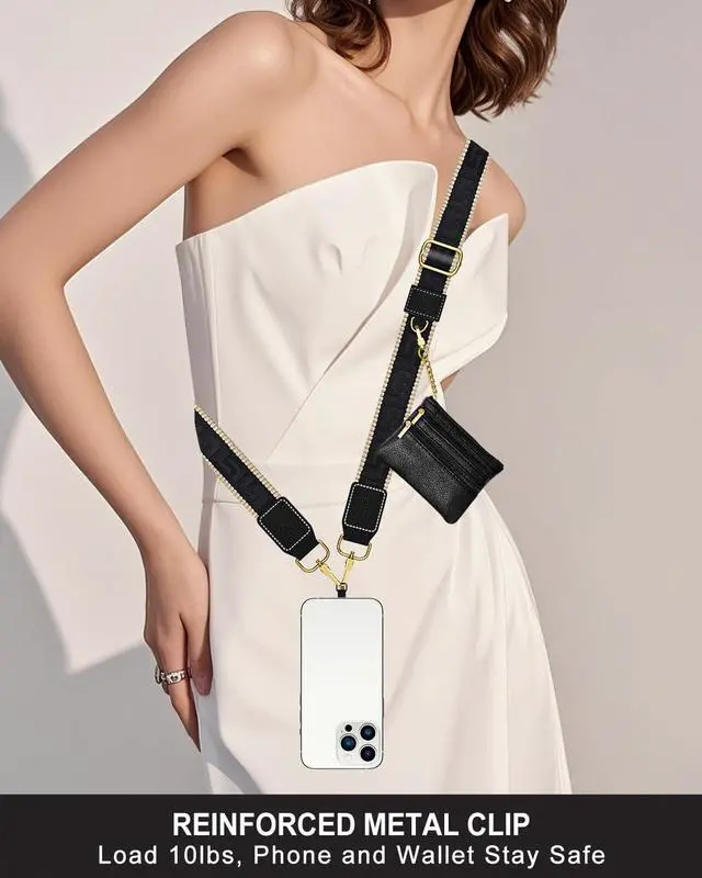 Capacity: Crossbody phone strap comes with 1 extra zippered wallet. Multi pocket design plenty of room perfect to hold your credit card key lipsticks headphones cash and other small item enough to satisfy all your needs for an everyday walletCharging: The phone tether tab is processed and solidified with oxford cloth which has excellent abrasion resistance. Ultra thin 0.4 mm thickness can be tightly attached to your case and the cell phone which allows you to charge your cell phone easilyFashionable
