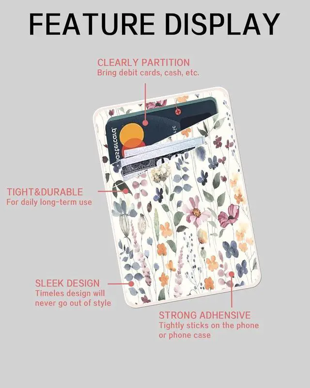 Adhesive]: This phone pocket card holder is applied with 3M adhesive sticker backing for a strong firm long-lasting effect. Provides a strong attachment to the back of your phone/phone case.
