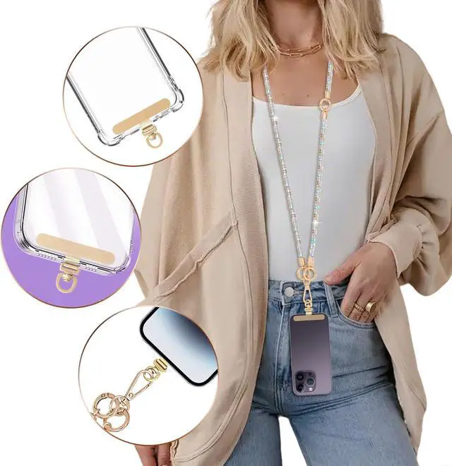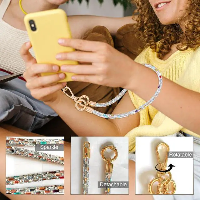 Bling crystal cell phone neck lanyard transforms your cell phone into a wearable accessory freeing your hands for whatever life throws your way. so whether you're commuting to work playing outdoors studying or on the go lanyard for phone is your reliable companion. Cute and practical crossbody strap for cell phone was easy to install and feels sturdy cell phone lanyards for women made gold zinc alloy and crystal rope. secure lock reliable pad you can confidently carry your phone keys or even a small wallet. phone holder lanyard for women anytime keeps your stuff safe.