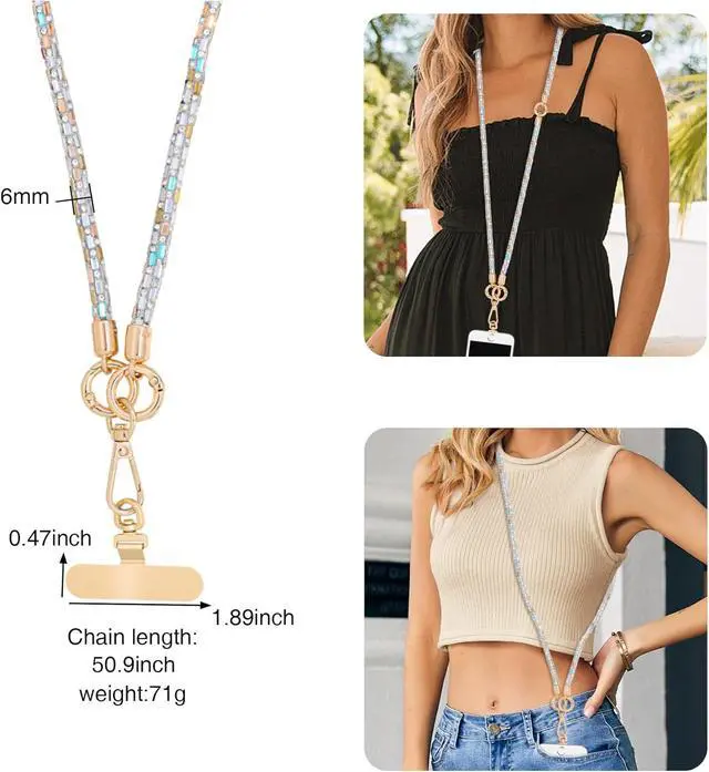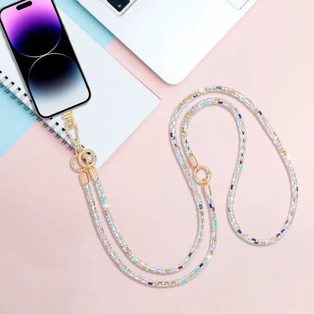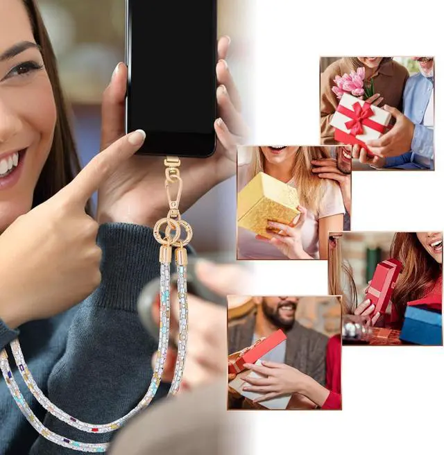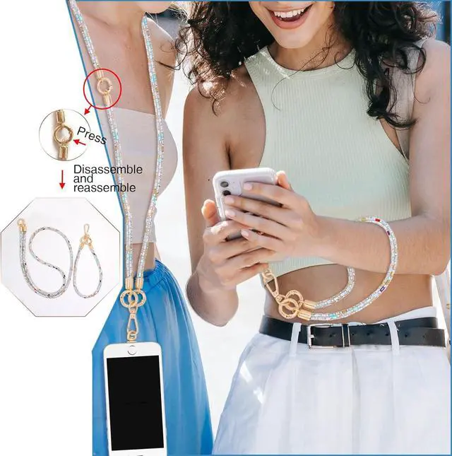 Lanyard for phone suitable length: the total length of this detachable cell phone strap is 51inch weight: 71g. convenient for daily use not only can you hang your cell phone but also your cameras wallet keys headphones sunglasses etc it's lightweight yet sturdy making it an excellent partner for your outdoor activities hikes and travels. Best gift- nicely packaged each crystal lanyard has been put into a small bag unique design crossbody phone chain for your girlfriend fiancee wife lover mom daughter aunt and friends. it is also a good choice for anniversary day birthday wedding party date new years day valentines day thanksgiving day christmas day boxing day or other special occasions.