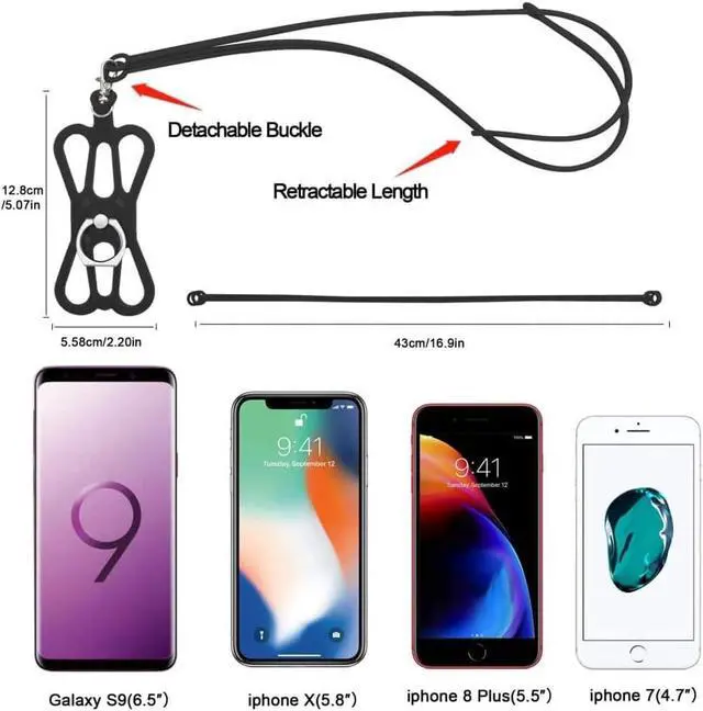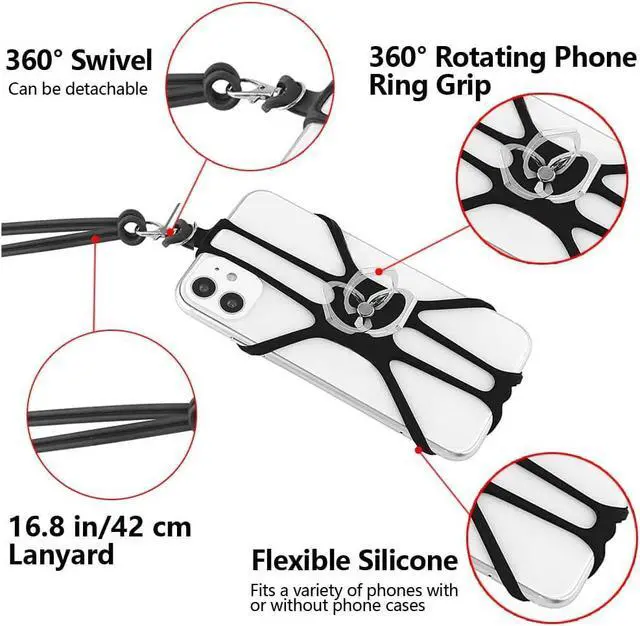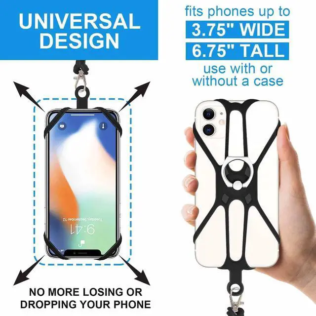 2 PCS Durable Lanyard for PhoneComes 2 Packs. This cell phone lanyard with phone ring grip is made of lightweight yet extra-strong stretchable silicone material elastic and durable. With a convenient webbed design the cell phone lanyards for around the neck can wrap around your cell phone providing a secure carrying solution with drop protection. Multifunctional Neck Phone HolderThis is not only a drabcoplex iphone lanyard With our crossbody phone lanyard you can securely wear your phone credit card cash and ID around your neck without compromising on comfort.
