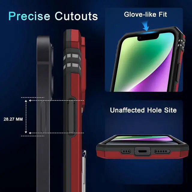 Compatible with: Armor Case with sliding camera cover specially designed for iPhone 13 6.1 Inch for iPhone 14 6.1 inch. NOT fit for other device! The precise cut out fits each button camera speakers and ports precisely easy to press and accessMilitary