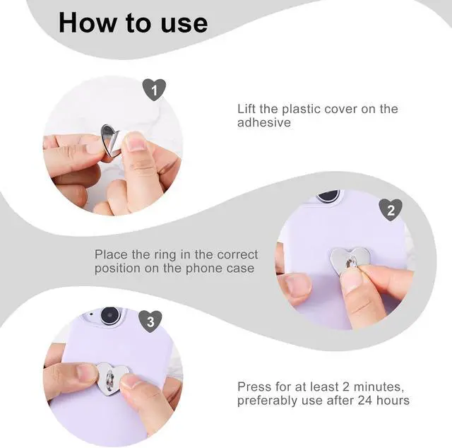 Easy to Use: The phone ring holder comes with adhesive on the back you just need to peel off the protective film on the back and attach it in the desired position finally press for at least 2 minutes it is best to use it after 24 hours.