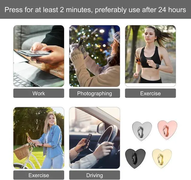 Package Content: You will receive 8 pieces of heart cell phone ring holders 2 each in rose gold black gold and silver. The quantity is enough to meet your use and replacement needs.
