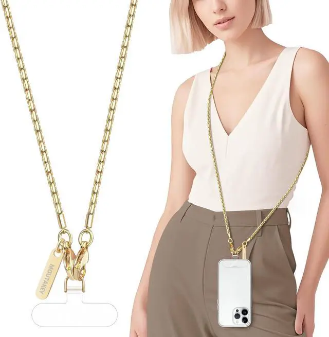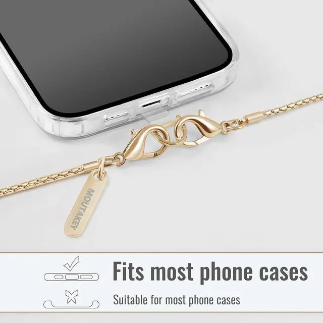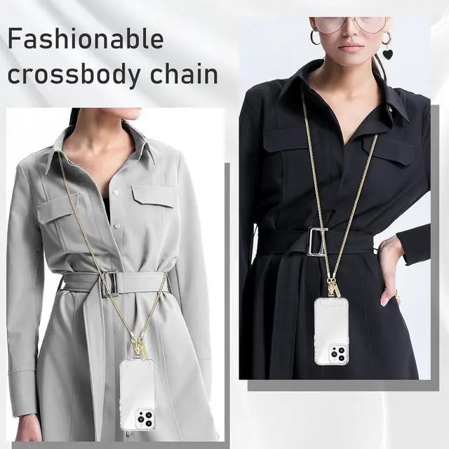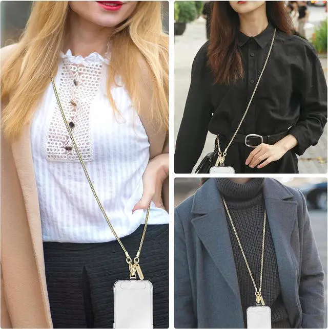 [High Quality Material]The Phone Lanyard is made of high quality and high strength metal material which ensures that the phone strap is sturdy almost not break the color not fading and has a long-use life. One-piece shaped design makes the appearance fashionable and lovely. Lightweight(40g/ 1.4 oz) and Smooth phone chain strap can meet the demand of wearing comfort. Ultra-thin silicone patches are extremely durable. [Multifunctional Fashion Accessory]The iphone chain made of metal is more shiny and fashionable compared with the ordinary crossbody phone lanyard. This simple and elegant phone strap match your any outfits and looks.