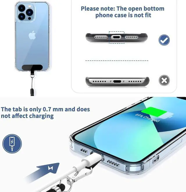 Safety and DurableThe cell phone lanyard is made of sturdy polyester After several product tests the sustainable fabric will not break even if you tear it strongly. So you don't need to worry about your phone falling down suddenly. Easy ChargingThe universal cell phone chain does not block your charging hole so you can easily charge your phone while using the product.