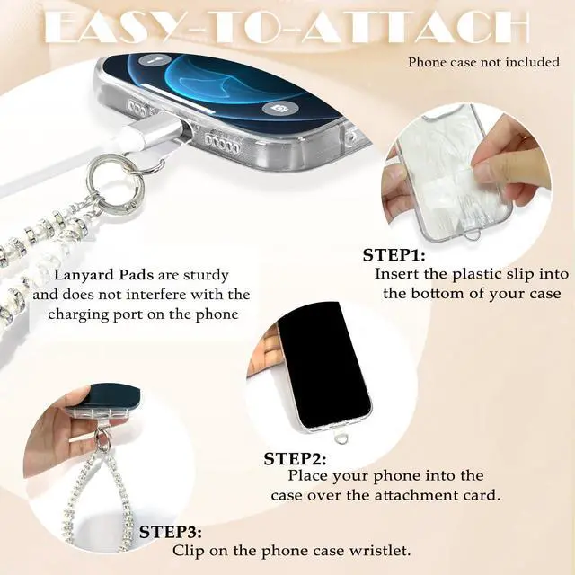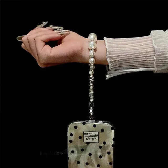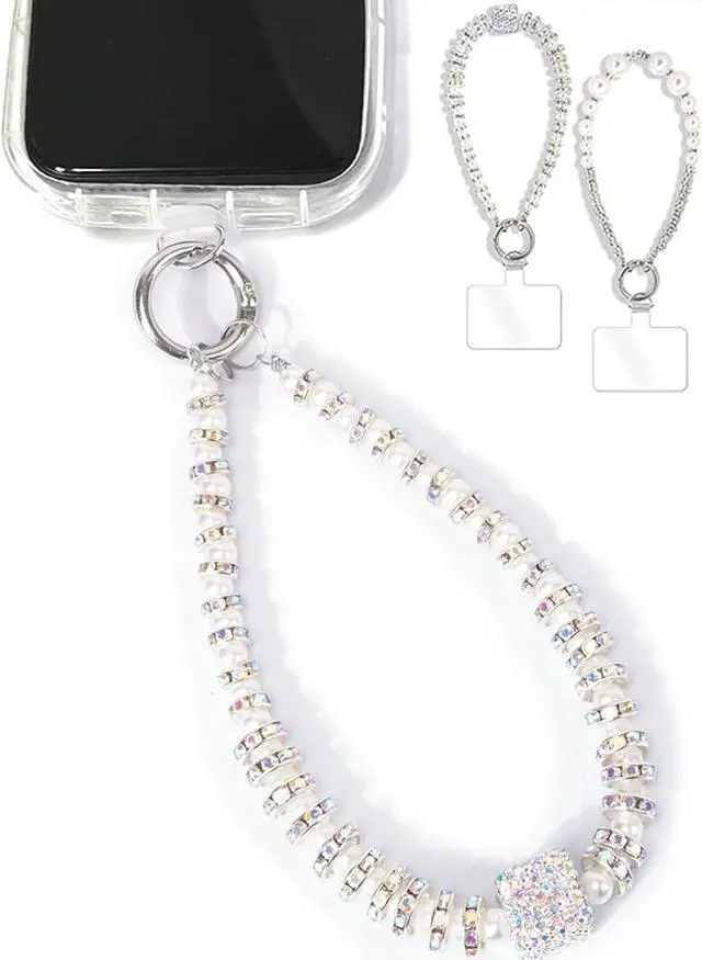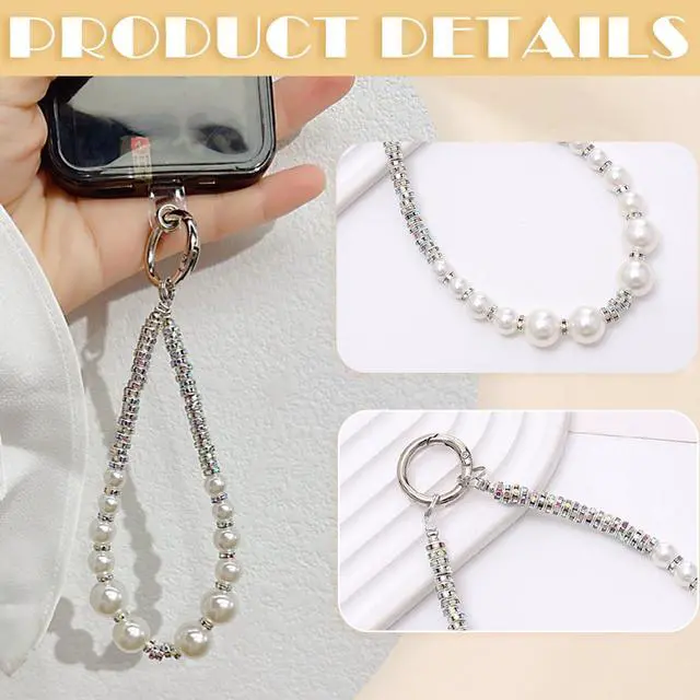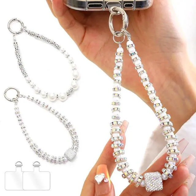 STYLISH ACCESSORY: The cell phone charms beaded design looks beautiful and stylish pearl bling rhinestones as an accessory for your phone bringing unique texture and visual interest with this phone bracelet strap. WORRY-FREE USAGE Anti Theft Phone Strap: Say goodbye to phone-dropping anxiety with this dependable wrist leash that keeps your device safely affixed to your wrist during active use.