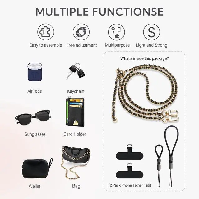 Your Hands: Cell phone lanyard The adjustable length design allows you to wear it around your neck or cross-body making it more convenient to hold your phone without worrying about it dropping. It keeps your phone secure and accessible within your field of vision whether you're shopping walking the dog cycling or taking photos2 x Durable Pads&No Block