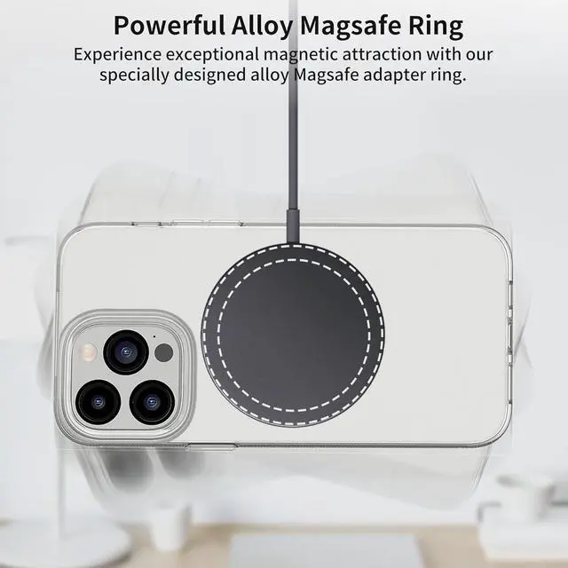 Thin&LightThis Magsafe metal ring sticker is designed to be ultra-thin with a thickness of just 0.016 and a weight of only 0.1 oz. Not only does it avoid adding bulk to your phone but it's also incredibly lightweight and won't interfere with wireless charging capabilities. Please note that the sticker itself does not contain magnets and should be used in combination with magnetic products. Wide CompatibilityThe Magsafe ring is compatible with a variety of phones including iPhone 17/17 Air/17 Pro/17 Pro Max 16/16 Plus iPhone 15/15 Plus/Pro/Pro Max iPhone 14/14 Plus/Pro/Pro Max iPhone 13/13 Mini/Pro/Pro Max iPhone 12/12 Mini/Pro/Pro Max iPhone 11/11 Pro/11 Pro Max iPhone X/XS iPhone 8 Plus as well as Galaxy S8/S9/S10/S20/S21/S22/S23/S24 Galaxy Note8/Note9/Note10/Note20.