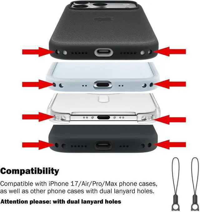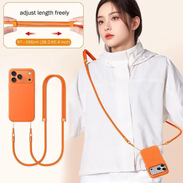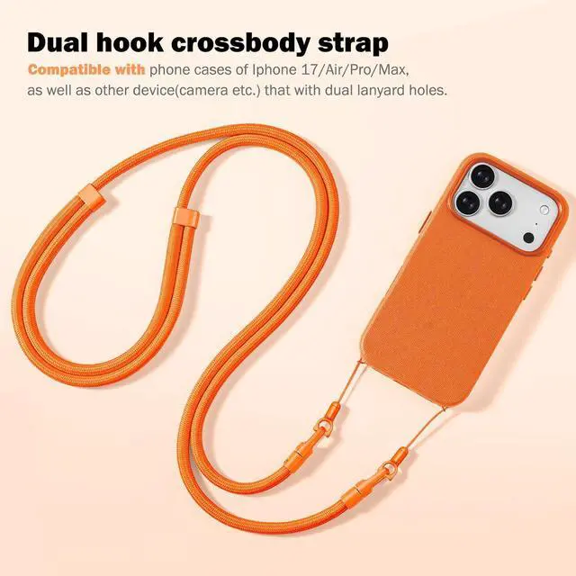 With this crossbody strap you can free up your hands when traveling. Pick up your phone when taking photos and hang it around your waist or neck when not in use which is convenient and fast and can also prevent loss and theft. Compatible with Iphone 17/Air/Pro/Max phone cases as well as other device(camera etc. ) that with dual lanyard holes. By removing the small lanyards at both ends it can also adapt to more items. (bags etc. )The comfortable length can be adjusted freely with a range of total length of 97-166cm ( 38.2 - 65.4 inch) suitable for both kids and adults.