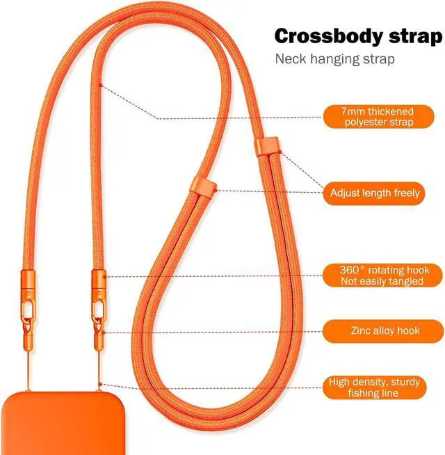 It can be used as either crossbody strap or neck hanging rope. 7mm thickened woven textured rope beautiful sturdy durable soft lightweight and comfortable. Please pay attention to the sequence during installation: first install the two small lanyards to the phone and then connect the small lanyards to the crossbody strap. This product does not come with phone case.