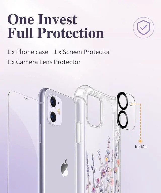 [Compatibility] ONLY compatible with iPhone 11 6.1 inch (2019 Release) Full Body Protection] Come with tempered glass screen protector and camera lens protector which can provide full body protection for your phone. Raised edges protect your phone screen and camera surface away damages from scratches and bumps in daily life. Corner bumper can absorb shock of drops up to 10FT[Non-Yellowing & Chic Fashion] Made of impact-resistant and flexible durable TPU ensures long lasting clarity allows to retain phone's original look without losing your own personality. Made of a unique printing technique these patterns won't rub off fade or smudge[Lightweight & Pocket Friendly] The slim phone case brings you greater portability and firmer grip without adding bulk.