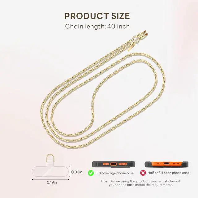 Metal Materials & Mono assembly: The cell phone crossbody chain is beautifully made with fine metal material and features a durable metallic in-case clasp; By adopting whole shaped technology the phone chain has the characteristic of high intensity and durability. Though it is 1.2M length it is quite light weight you can not feel the weight when you wear our phone chain. This aesthetic phone chain can be easily attached or detached making it convenient for on-the-go useCompatible with all