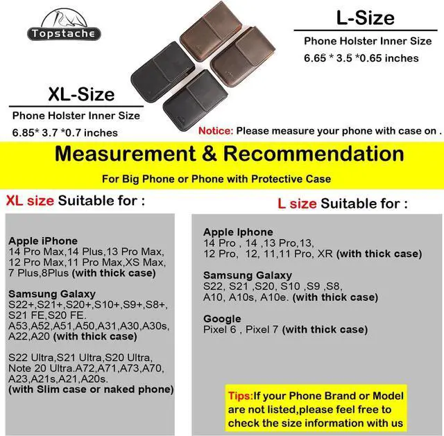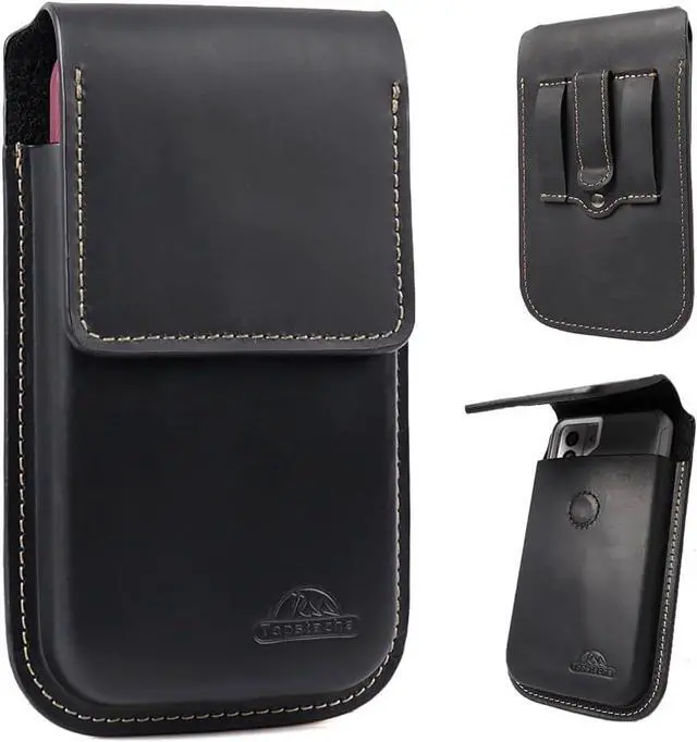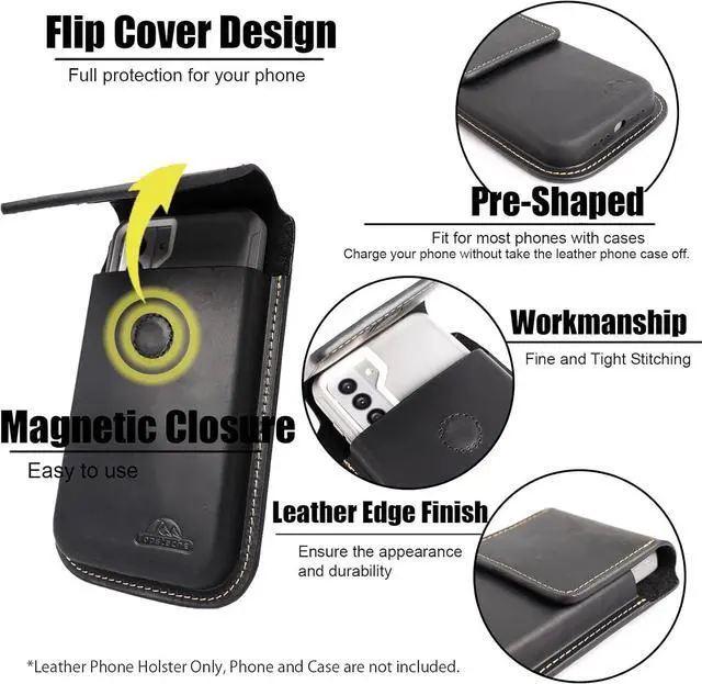 Fits Phone with Case- The Belt Clip cell phone holster is designed to accommodate most Smartphones with a protective case and stay closed with a Long-lasting magnetic closure. The internal dimensions of the leather phone holster are 6.85 x 3.7 x 0.7 Fits for iPhone 17/16/15 Pro max Galaxy S25/S24 Plus S21 Plus Note 20 Ultra and more. Practical Design-With comfort and practicality in mind the flip cell phone case is designed with a magnetic closure instead of a push-button that requires pressure on the phone to close. A strong magnetic closure keeps the flip cover closed providing security and holding your phone firmly in place.