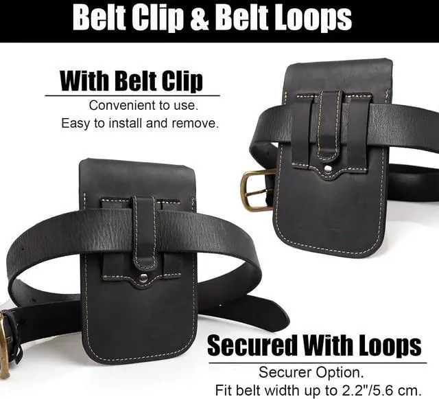 Easy to Carry- The Cell phone holster has a belt clip and double belt loop. No matter wear a belt or not you could clip the phone holster to anywhere you like very convenient to use. The double belt loops are 2 inches wide to ensure that the cell phone belt holder is held tightly on your belt. Convenient to Use- Hole design at the bottom of the phone holster allows you to easily access the charging port to charge your phone without removing the leather phone case. Allows you to effortlessly lift the flip cover with one hand while your phone is in the leather belt pouch and then take your phone out of the cell phone case or put it back in for easy access to your daily calls.