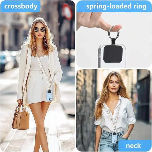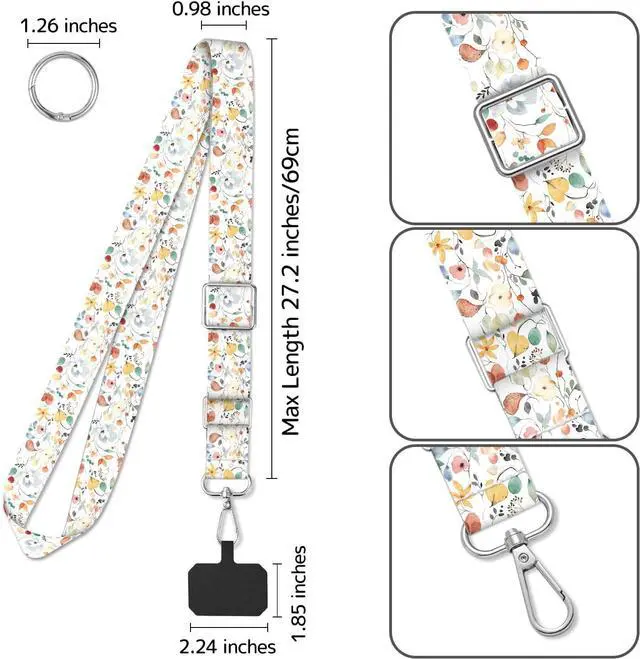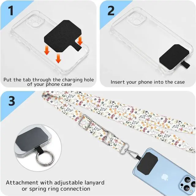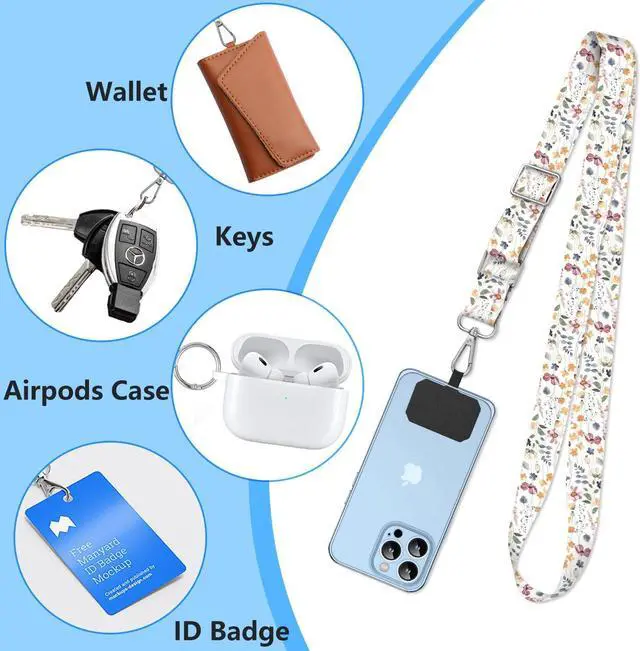 Cute cell phone lanyard set includes 2 adjustable crossbody cell phone lanyards 2 cell phone tether tags and 2 metal spring rings. With a variety of fun designs of cell phone lanyards you can choose the one that best suits your personality. The Necklace Phone Lanyard allows you to customize the length to your liking. As a cell phone accessory the phone lanyard is especially convenient when you need to free your hands for other activities such as shopping walking running going out or traveling. The Cell Phone Shoulder Strap Crossbody Bag is designed to be versatile allowing you to carry your phone around your neck or slung across your back and the ultra-thin tear-resistant padding supports both wired and wireless charging without the need to remove it.