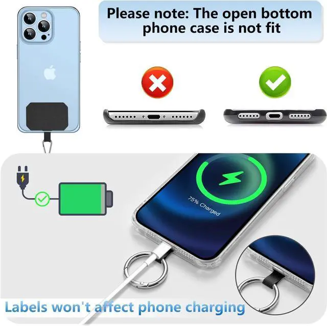 Cell phone buttons and screen are fully accessibleTo ensure quality the neck strap and wrist lanyard are made of high quality soft polyester material. Reinforced tags and sturdy metal buckles are strong enough so you don't have to worry about broken tags. Easy to install for most smartphones you just need to insert the pad into the charging hole of your fully covered case then plug in your phone and connect it to the lanyard. Please note that half cover phone cases are not supported.