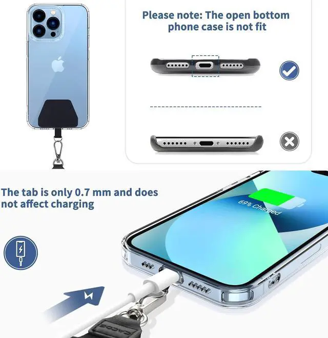 Safety and DurableThe cell phone lanyard is made of sturdy polyester After several product tests the sustainable fabric will not break even if you tear it strongly. So you don't need to worry about your phone falling down suddenly. Easy ChargingThe universal cell phone chain does not block your charging hole so you can easily charge your phone while using the product.