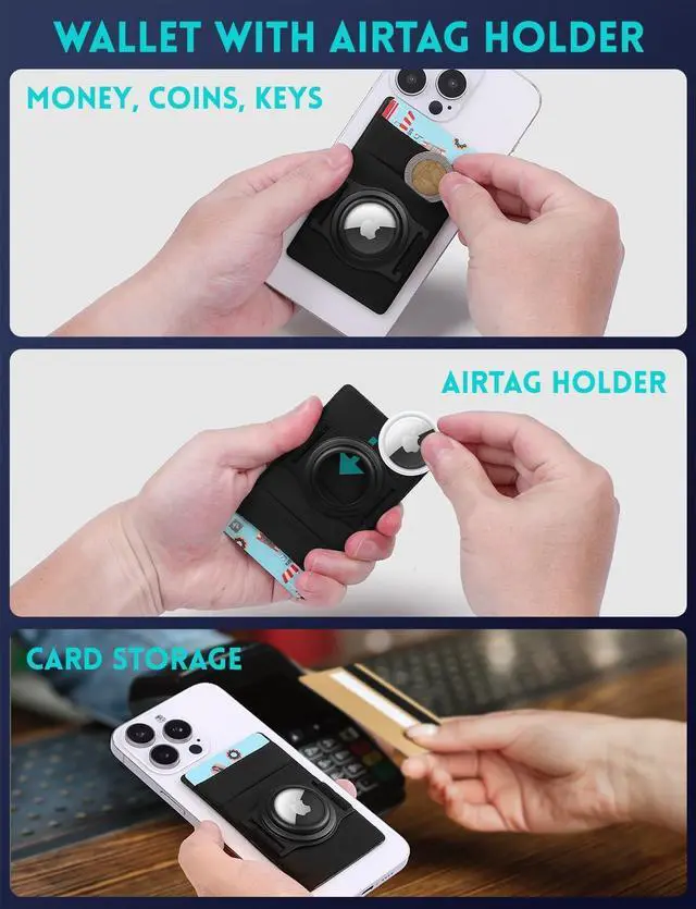 Versatile Cell Phone Wallet with AirTag Holder? This wallet phone case is designed for convenience featuring an AirTag holder card holder and money pocket. Perfect for keeping your cards cash Coins Keys and AirTag securely attached to your iPhone 11/12/13/14/15/16 or 17 Pro Max ensuring your essentials are always within reach. (AirTag Not Included) Premium Cell Phone wallet with Card Holder? Stay organized with this phone wallet case that includes a card holder adhesive for your phones back. Compatible with iPhone 11 iPhone 12 iPhone 13 Pro Max Plus Minin. and iPhone 14 iPhone 15 iPhone 16 and iPhone 17 Pro Max Plus Minin.