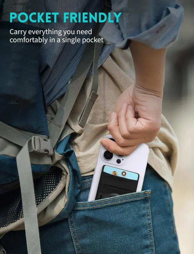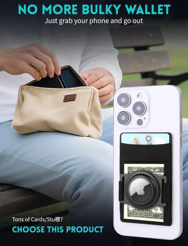 this cell phone wallet is ideal for carrying your credit cards ID and money Coins Keys without needing a separate wallet. iPhone 16/17 Pro Max Cell Phone Wallet? Crafted for the latest models this wallet case is specifically made for iPhone 16 Pro Max iPhone 17 Pro Max and earlier models like the iPhone 15 Pro Max iPhone 14 Pro Max. Its a sleek and practical solution for storing your credit cards cash coin and AirTag all in one placePerfect for Everyday Use and Travel? With its stick-on design this adhesive wallet is a space-saving solution that sticks firmly to the back of your phone.
