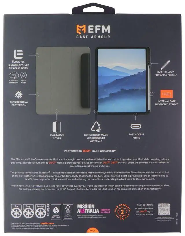 The EFM Aspen Folio Case Armour with D3O & Leather for Apple iPad 9th/8th/7th Gen (10.2-inch). Black version.